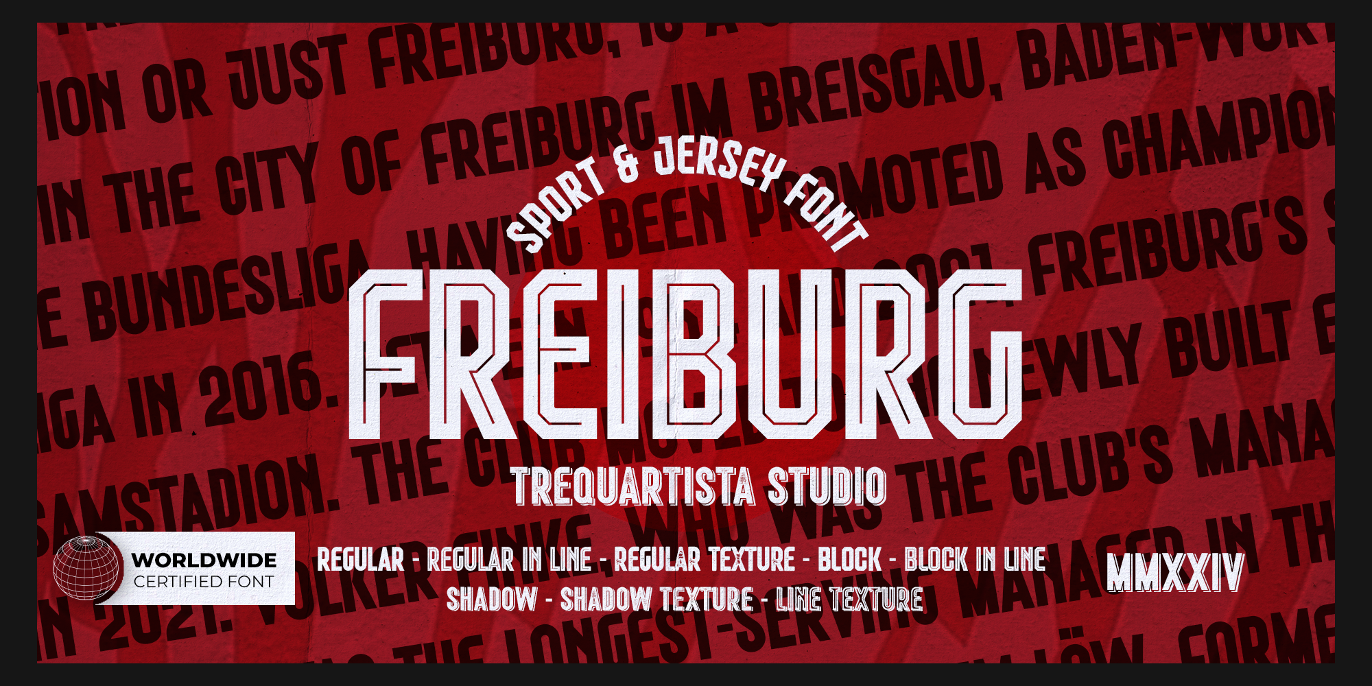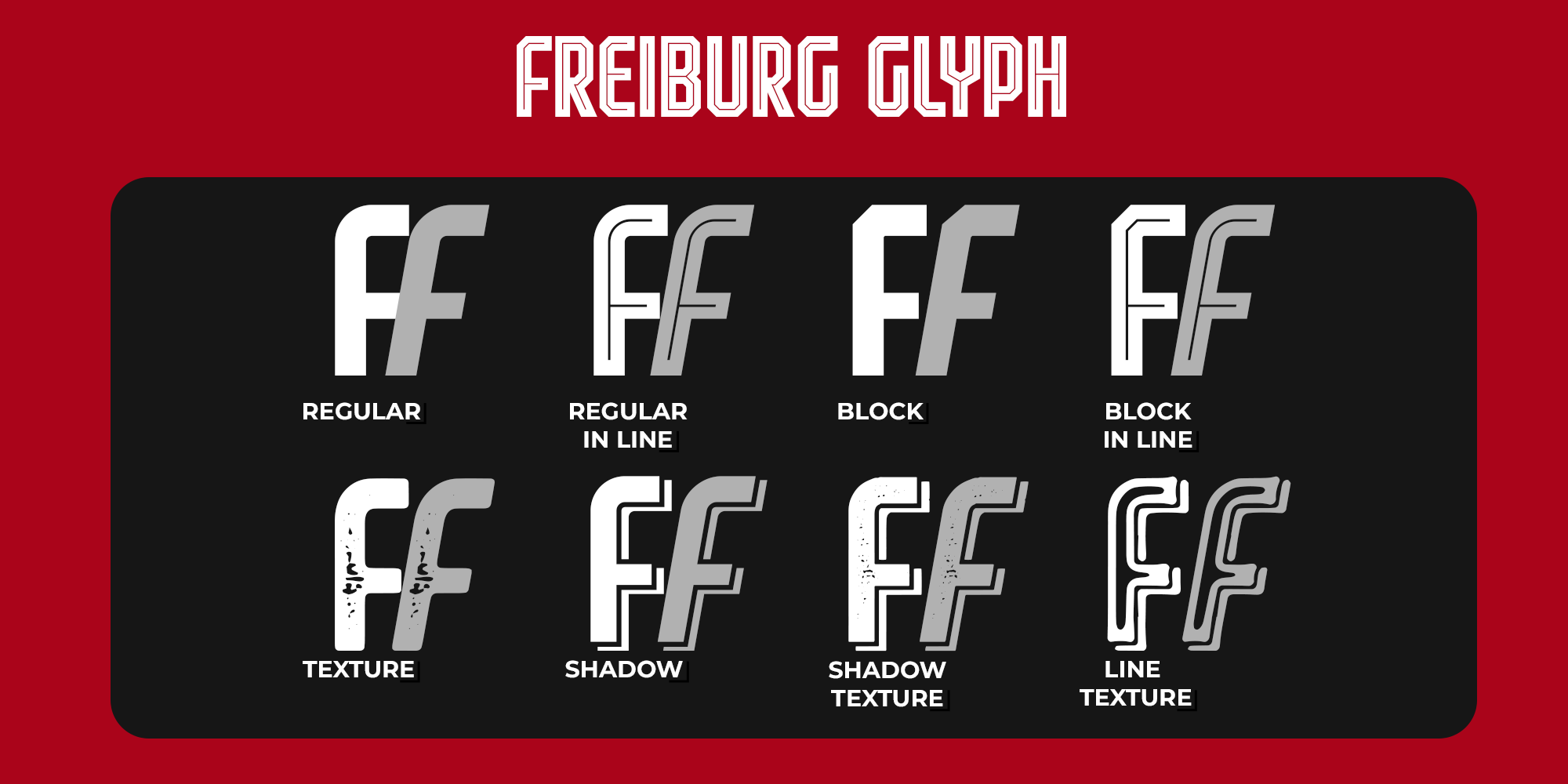 Rooted in the energy of matchday chants, the rhythm of supporters, and the clean geometry of the Black Forest cityscape, this type system captures both tradition and forward momentum. Strong, compact, and unapologetically competitive — Freiburg is designed to stand tall on any stage.